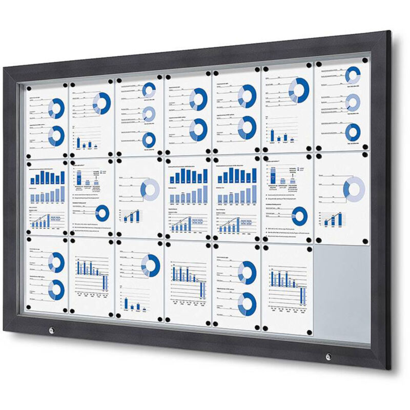 Bacheca Bacheca da Esterno con Apertura a Ribalta 168,5x106,7x4,7 cm in Alluminio con Led Grigio Antracite La bacheca per esterni è realizzata in alluminio estruso e presenta spigoli arrotondati. Il suo colore è verniciato a polveri grigio antracite, conferendo un aspetto elegante e moderno. Il fondo magnetico è scrivibile e cancellabile, realizzato in acciaio laccato bianco. L'illuminazione interna è garantita da strip a LED con trasformatore integrato. L'apertura a ribalta è realizzata in vetro temperato, fornita anche di serratura e 2 chiavi. La bacheca è certificata vetro temperato ESG, resiste all'acqua e alla polvere con grado di protezione IP56, ed è resistente al fuoco B1. È dotata di pistoni a gas per un'apertura agevole e include un kit per il fissaggio a parete. Le sue dimensioni sono di 168,5x106,7x4,7 cm, con un formato di 21xA4. Caratteristiche Tecniche bacheca per esterni Materiale: in alluminio estruso Spigoli arrotondati Colore: verniciato a polveri grigio antracite