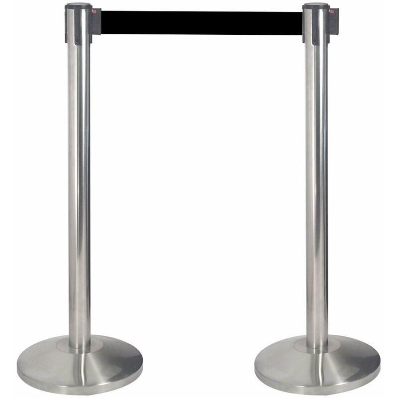 Colonnine Separacode 2 Colonnine Tendinastro 3 metri in Acciaio Inox Spazzolato Ø36x101 cm Nastro Nero Colonnine tendinastro in acciaio Inox con finitura spazzolata, dotate di sistema tendinastro autofrenante e 3 agganci riceventi. Base in cemento 65 mm con copertura superiore in acciaio finitura spazzolata e guarnizione inferiore anti-scivolo. Caratteristiche Tecniche Colonnina segnapercorso in acciaio inox spazzolato Nastro estendibile in polipropilene altezza 48 mm, resistente agli agenti atmosferici La base del colonnina è riempita con cemento per garantire la massima stabilità Inserto in ABS anti-ruggine tra colonna e base Ideale per l'uso in ufficio, a teatro, in negozio, in Hotel o in albergo Perfetto per delimitare spazi o incanalare una fila di persone Peso totale: 10 kg Nastro con clip di sicurezza finale Colore Nastro: Nero Lunghezza Nastro: 3 metri + 3 metri Dimensioni (ØxA): 36x101 cm