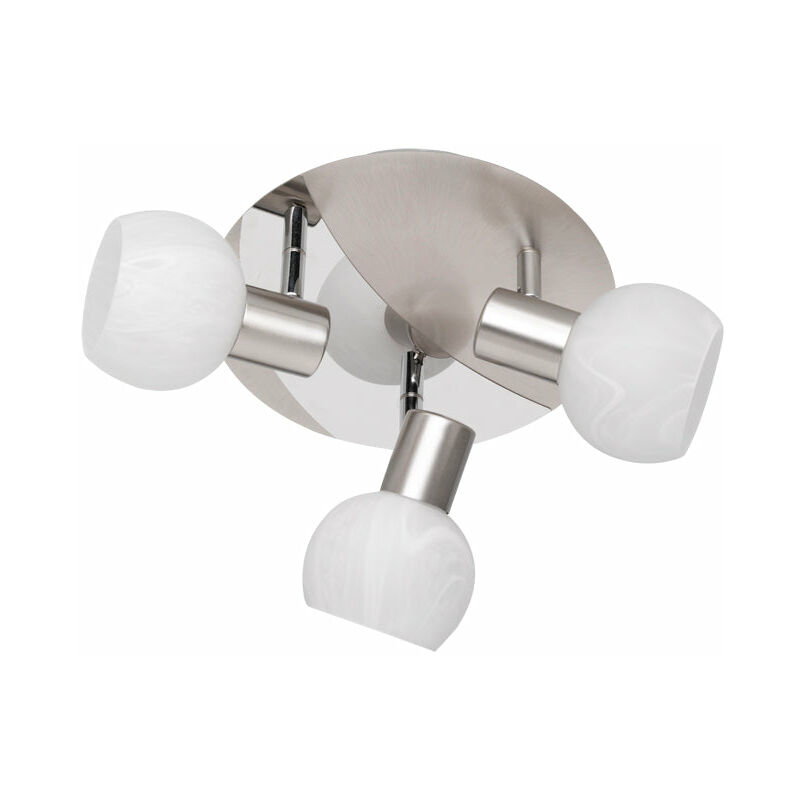 Faretto Faretto da Interno E14 in Metallo Nickel Opaco Antibes Plafoniera 3 Spots Acciaio Dec. Cromo Att. E14 Diff. Vetro De. Alab. D. 22 Caratteristiche Tecniche Stile Moderno Fonte di luce principale: Lampadina (non Inclusa) Attacco E14 Materiale: Metallo Colore Finitura: Nickel Opaco Potenza (W): 4 Lumen: 320 Kelvin: 3000K Alimentazione (V): 230 Durata Nominale (h): 25000 Numero Accensioni: 12500 Classe energetica: F Altezza (cm): 17 Diametro (cm): 22 Peso netto (kg): 1,25