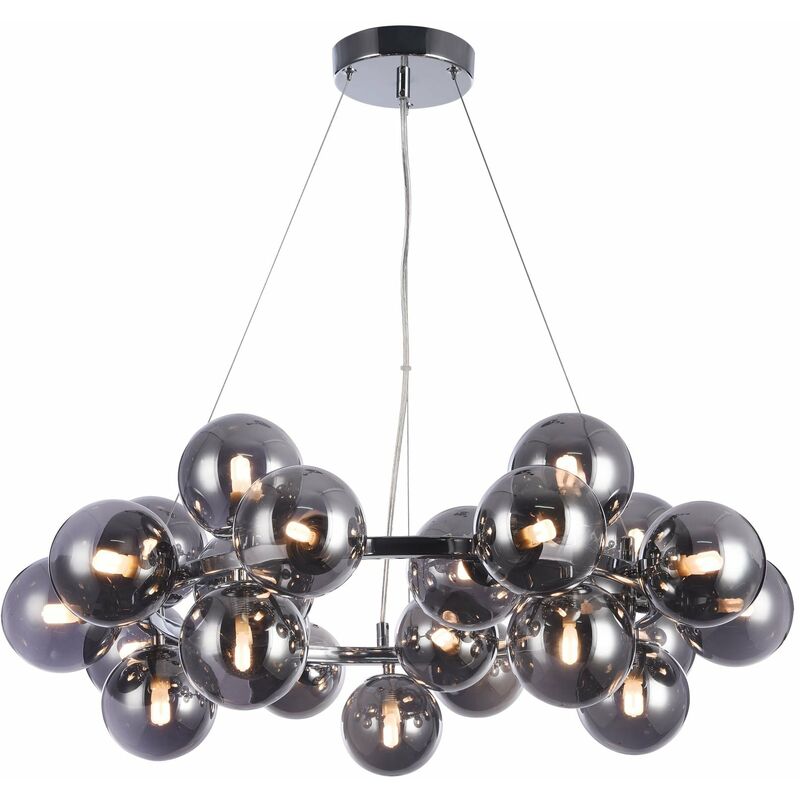 Lampada Lampada pendente Modern in Metallo Dallas Cromo Struttura in Metallolo dorata o cromata. Diffusori in vetro. Caratteristiche Tecniche Tipo prodotto: Lampada pendente Stile: Modern Collezione: Modern Nome della serie: Dallas Colore corpo: Cromo Materiale corpo: Metallo Altezza corpo (cm): 23,8 Diametro (cm): 69 Altezza massima (cm): 135,4 Altezza minima (cm): 23,8 Protezione IP: IP 20 Classe protezione: Class1 Voltaggio: AC 220-240 Attacco Lampadina: G9 Quantita lampadine: 25 Potenza lampadina (W): 28 Forma Rosone: Rotonda Altezza rosone (cm): 2,5 Diametro rosone (cm): 12 Tipo Montaggio al soffito: Barra Lunghezza catena (cm): 120 Materiale paralume: Vetro Forma paralume: Sfera Colore Paralume: Fumè Diametro Paralume (cm): 10 Altezza Paralume (cm): 9,5