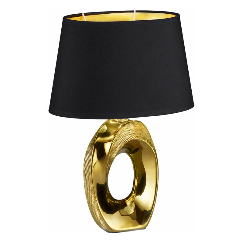 Lampada Lampada tavolo da Interno E14 in Ceramica Oro Taba Lampada Da Tavolo Base Ceramica Oro Con Paralume Nero E Oro H.33Cm Caratteristiche Tecniche Stile Moderno Fonte di luce principale: Lampadina (non Inclusa) Attacco E14 Materiale: Ceramica Colore Finitura: Oro Larghezza (cm): 23 Altezza (cm): 33 Profondita (cm): 16 Cavo-Base-Interruttore (mm): 300 Cavo-Interruttore-spina (mm): 1200 Colore del cavo: NERO Peso netto (kg): 0,7