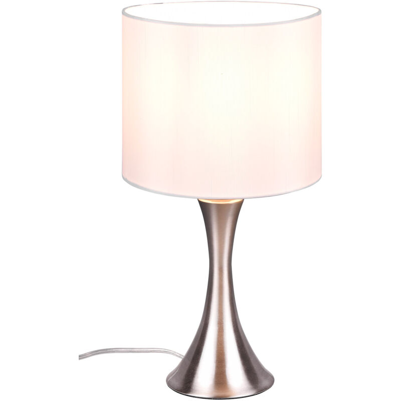 Lampade da Tavolo Lampada da Tavolo da Interno Attacco E27 in Metallo Nichel Satinato Sabia Lampada Da Tavolo Metallo Acciaio e Paralume Bianco H. 37,2Cm Caratteristiche Tecniche Stile Moderno Fonte di luce principale: Lampadina (non inclusa) Attacco E27 Materiale: Metallo Colore Finitura: Nichel satinato Potenza (W): 4 Lumen: 320 Kelvin: 3000K Alimentazione (V): 230 Durata Nominale (h): 25000 Numero Accensioni: 12500 Classe energetica: F Altezza (cm): 37,2 Diametro (cm): 20 Cavo-Base-Interruttore (mm): 300 Cavo-Interruttore-spina (mm): 1300 Colore del cavo: Nero