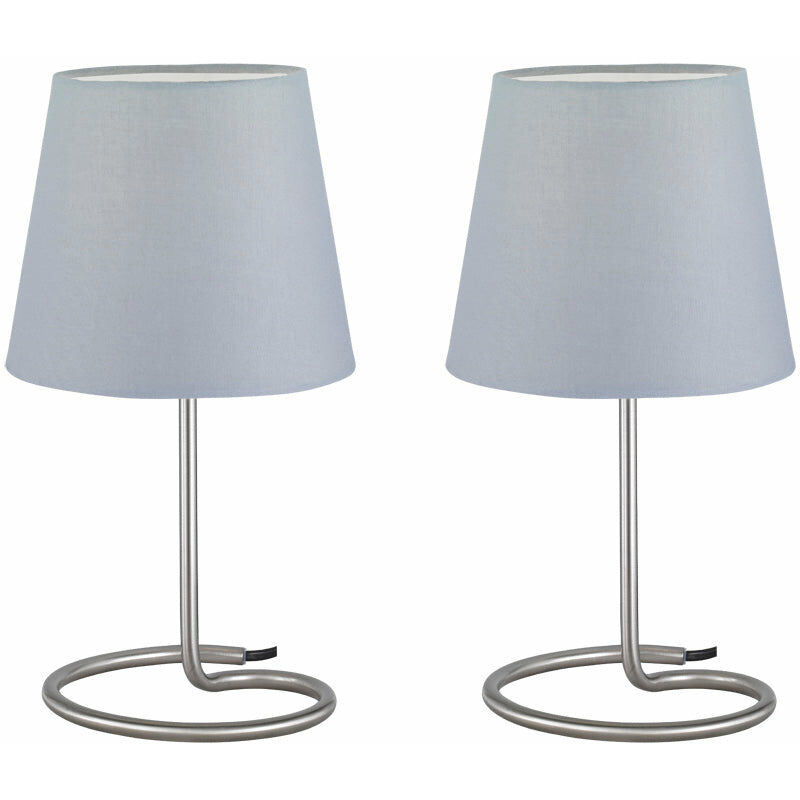 Lampada Lampada tavolo da Interno E14 in Metallo Nickel Opaco Twin Set 2 Lampade Da Tavolo Base Metallo Con Paralume Grigio H.33 Cm Caratteristiche Tecniche Stile Moderno Fonte di luce principale: Lampadina (non Inclusa) Attacco E14 Materiale: Metallo Colore Finitura: Nickel Opaco Altezza (cm): 33 Diametro (cm): 18 Cavo-Base-Interruttore (mm): 300 Cavo-Interruttore-spina (mm): 1550 Colore del cavo: NERO Peso netto (kg): 0,84