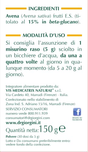Dr. Giorgini Integratore Alimentare, Monocomponenti Erbe Avena Estratto Titolato al 15% in Beta-Glucano Polvere - 150 g