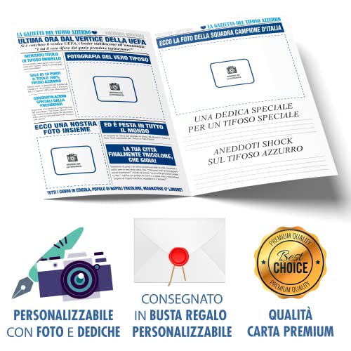 La Gazzetta del Tifoso Azzurro Personalizzabile ✍️ - Per quei tifosi innamorati della propria squadra, regalo personalizzabile da intestare, aggiungere aneddoti shock sul tifoso, una sua fotografia al suo interno, dediche speciali e la vostra firma originale, effetto wow assicurato!