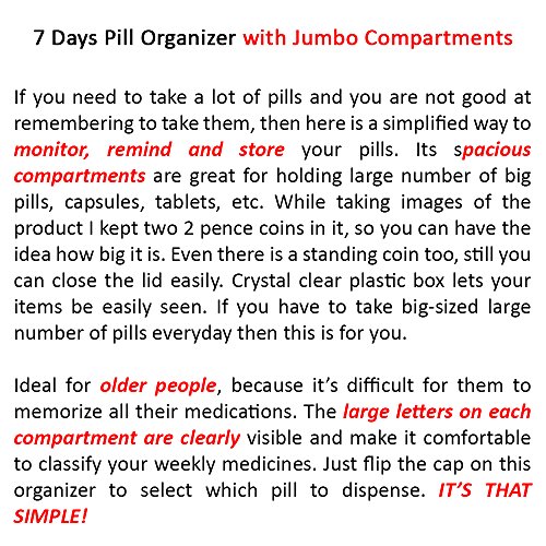 7 GIORNI GRANDE CONFEZIONE COMPRESSE SUPPORTO Contenitore Compresse Organizzatore Distributore Stoccaggio Vitamina