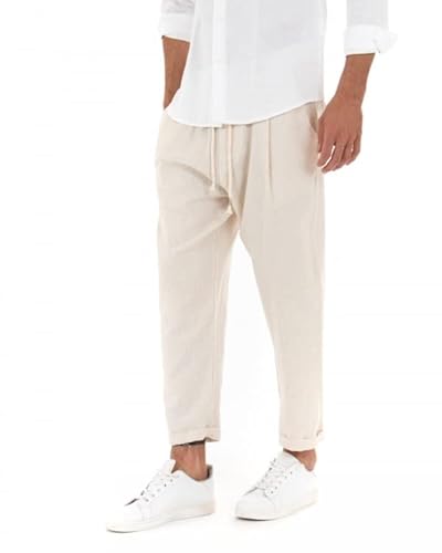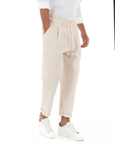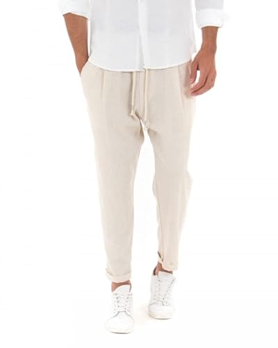 Giosal Pantalone Uomo Elastico Lino Tinta Unita Cavallo Basso Casual Vari Colori (Beige, S)