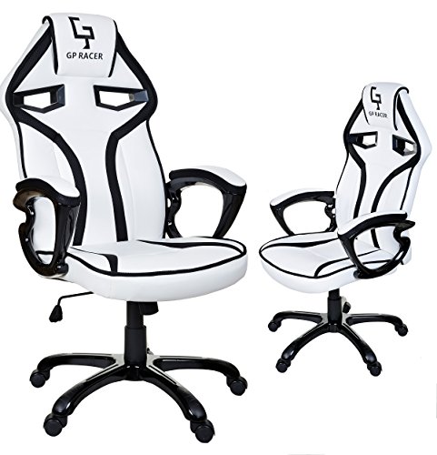GIOSEDIO GPR Racer Sedia Gaming, Sedia Scrivania, Sedi di Gioco, Gaming Chair, Poltrona Ufficio Similpelle,Altezza Regolabile, Girevole, Larga Sedia ergonomica da Alta (Bianco/Nero)
