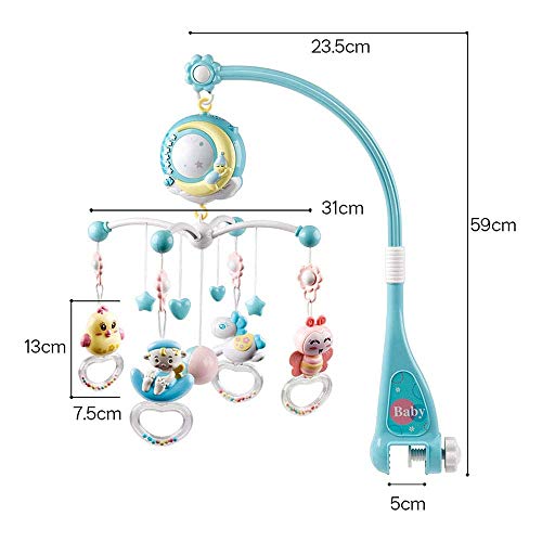 Giostrina Culla Neonati con Telecomando Musicale Proiettore Stelle Sonaglio Girevole a 360° Giostrina Lettino Multifunzione (Blu)