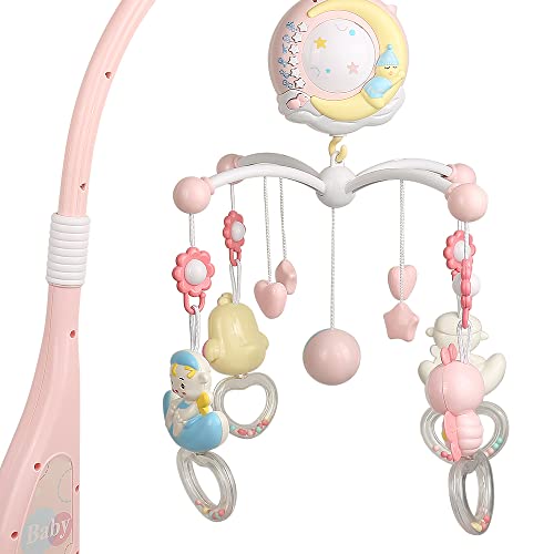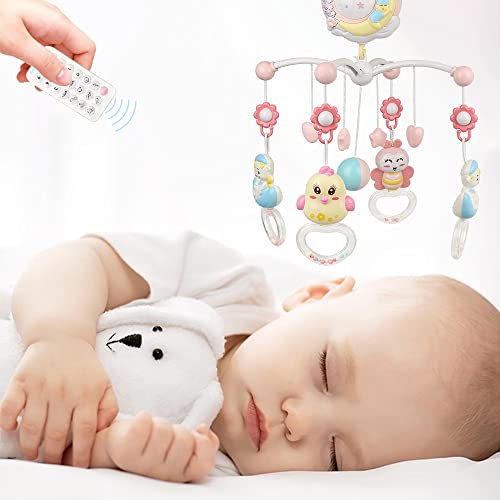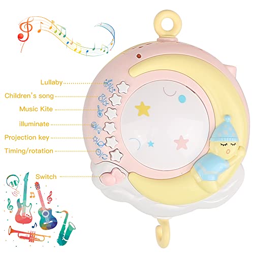 Giostrina musicale per neonato,Culla mobile girevole a 360 ° con musica e luci, Giocattolo per culla nato multifunzionale da appendere Campanellino per lettino con telecomando e proiezione