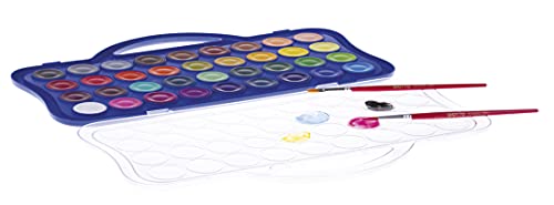 Prodotto 1: Confezione da 36 colori con 2 pennelli di qualità dotata di speciale coperchio tavolozza con cavità per diluire e creare mescole e con un design che evita la dispersione dell'acqua