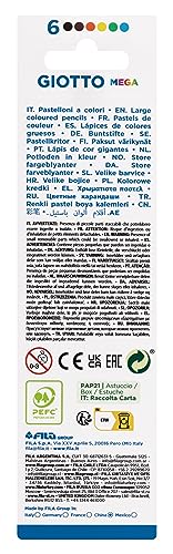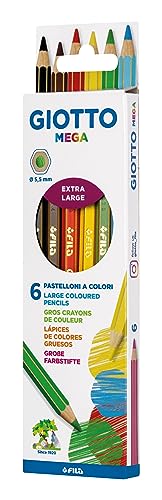 Giotto Mega, Matite Colorate Spesse, Formato Esagonale, Mina 5,5mm, Colori Assortiti, 6 Pezzi