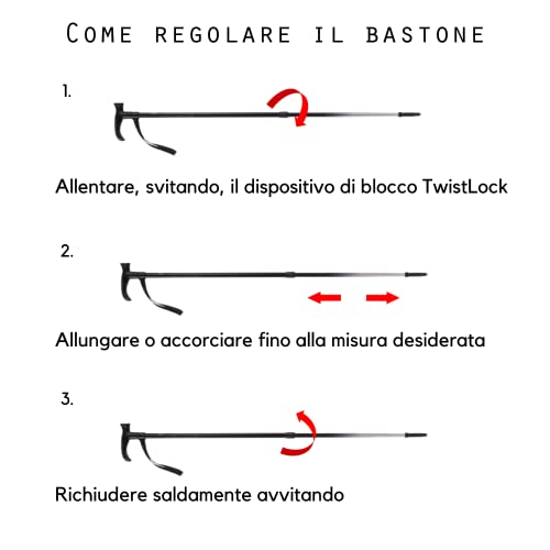 Gipron Bastone da passeggio Alfa - telescopico - in alluminio - made in Italy - regolabile in lunghezza