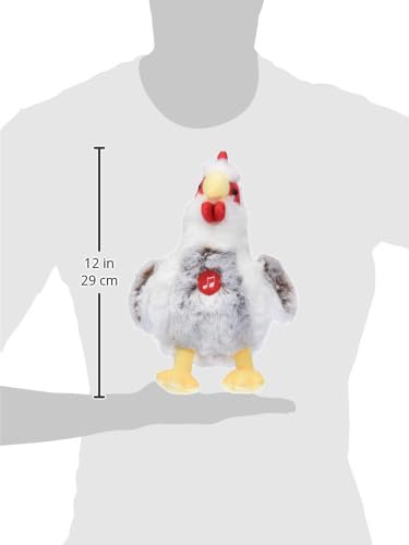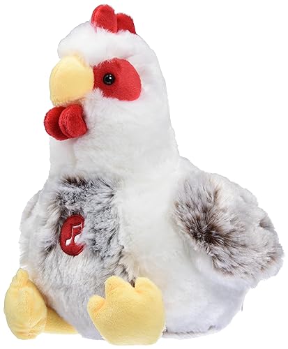 gallina bianca e marrone in morbido peluche. Chioccia quando le si preme la pancia. Disponibile in 4 colori diversi