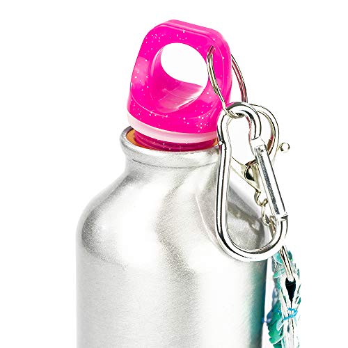 grazie al comodo moschettone, potrai agganciarla allo zaino, portarla sempre con te per la tua scorta di acqua. Il tappo è in color magenta glitterato.