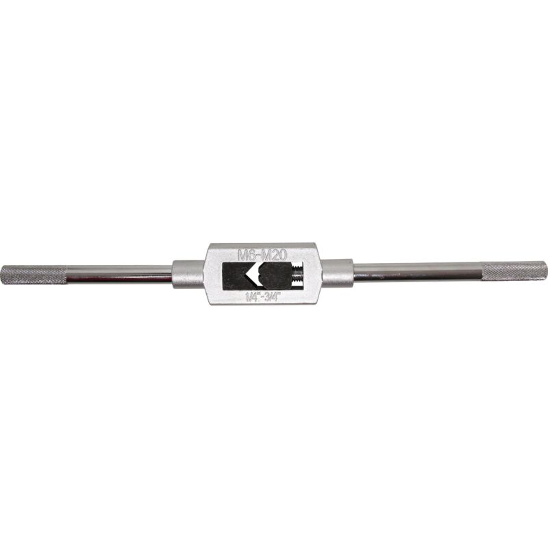 Manici in acciaio svitabili Adatto per maschi M6 - M20 Larghezza dei manici in acciaio 325 mm Testa di supporto in zinco pressofuso per fissare il maschio Adatto anche come giramaschi di ricambio per set di maschi BGS 1900 Peso del tessuto 0.468 Dimensioni dell'imballaggio 1 Peso lordo 468 g
