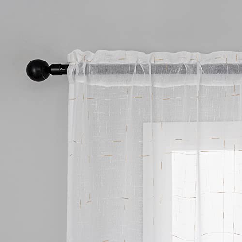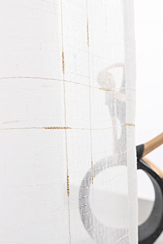 GIRASOLE Coppia Tende Voile Bianche Trasparenti Fantasia Reticolo Dorato Tenda per Soggiorno Camera Cameretta Porta Finestra Balcone 2 Pannelli con Tasca (Oro, 70_x_240cm)