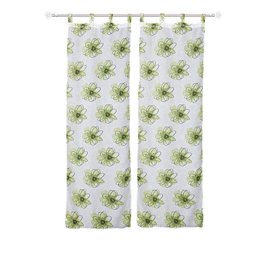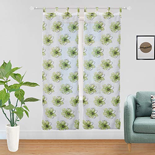 GIRASOLE Coppia Tendine semitrasparenti con Fiori Stampati 1 Telo 2 Pannelli 70x240cm con Passanti (Verde, 70_x_240cm)