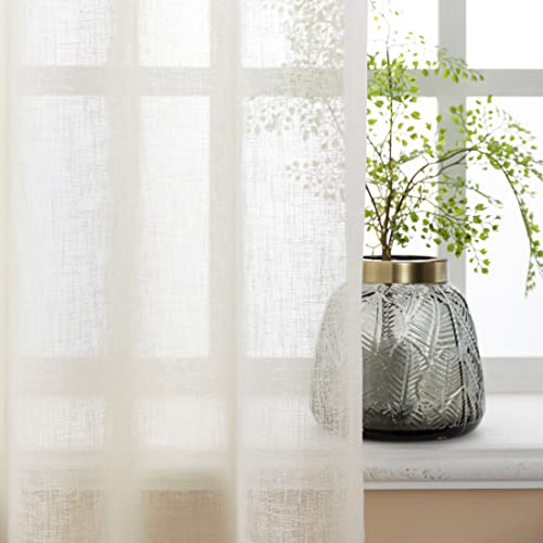 GIRASOLE HOME Coppia Tende Filtranti Semi Trasparenti Effetto Lino Tenda per Interni 2 Pannelli Con Tasca e Passanti Nascosti (Panna, 70x240cm)