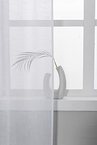 GIRASOLE HOME Coppia Tende Voile Trasparenti Effetto Lino Tenda per Soggiorno Camera Cameretta Balcone Finestra e Interni 2 Pannelli con Tasca (Bianco, 70x240cm)