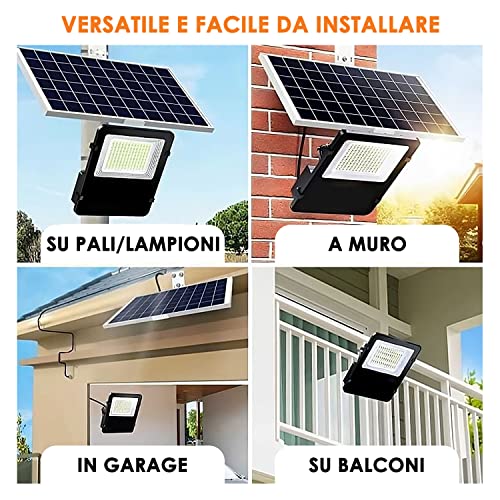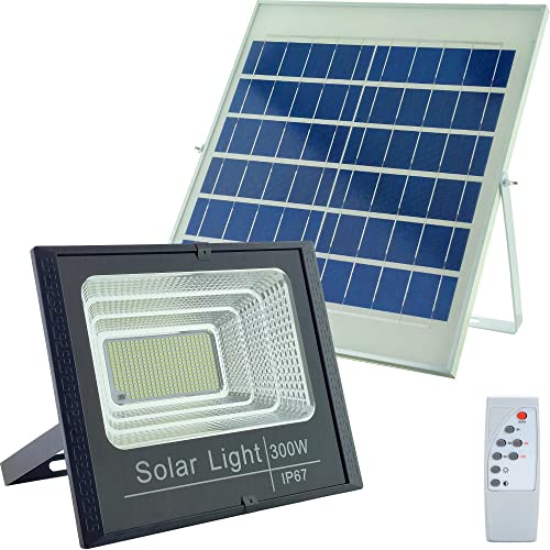 GIRASOLE HOME Faro Solare a LED da Esterno in ABS 300W IP67 Luce Bianca con Sensore Crepuscolare e Telecomando (300W)