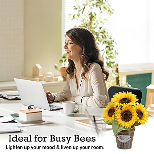 Girasoli Finti, Fiori Finti con Vasi, Piante Artificiali Girasole, 30cm di Altezza Piante Artificiali in Vaso Decorativo, Decorazioni per la Casa, Muro di Nozze, Desktop, Davanzale #4