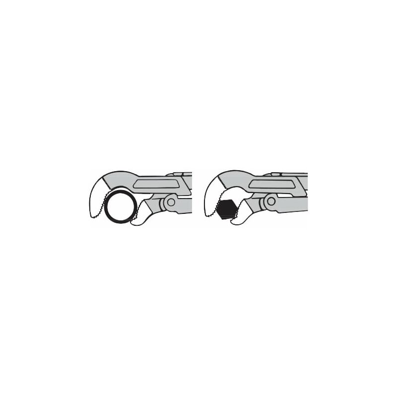 bocca temprata a induzione. Lucidate, verniciate. Dati tecnici Processo di produzione interamente forgiato Ganasce a S sì forma svedese sì Materiale pinza Acciaio al cromo-vanadio. Angolo ganasce Grad 45 Bonifica ganasce temprato a induzione Tipo di prodotto Giratubi e pinza regolabile Lunghezza complessiva, mm 675 Apertura, mm 120 ⌀ Tubo, Zoll 3