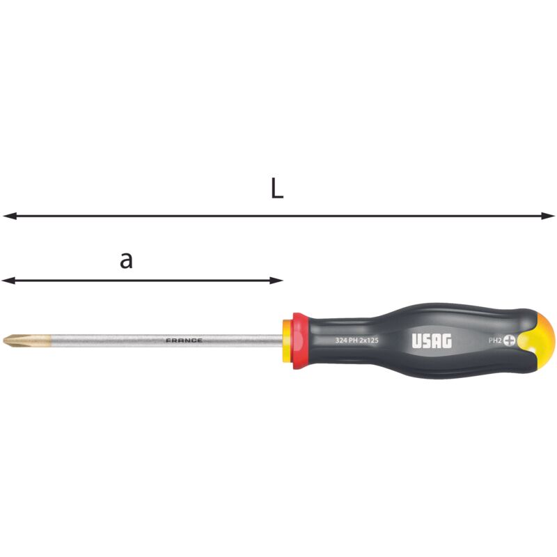 • Punta zincata che garantisce un'elevata resistenza all'usura ed alla corrosione • Lama in acciaio al Cromo Silicio Vanadio per un'ottima resistenza alla flessione • Impugnatura ergonomica trimateriale con rivestimento soft grip, resistente ad oli ed agenti chimici • Codice colore sull'impugnatura per distinguere le diverse impronte Codice n°xa L mm Misura impugnatura U03240439 0x75 179 M1 U03240440 1x75 184 M2 U03240441 1x100 209 M2 U03240442 2x100 220 M3 U03240443 2x125 245 M3 U03240444 3x150 275 M4 U03240445 4x200 325 M4