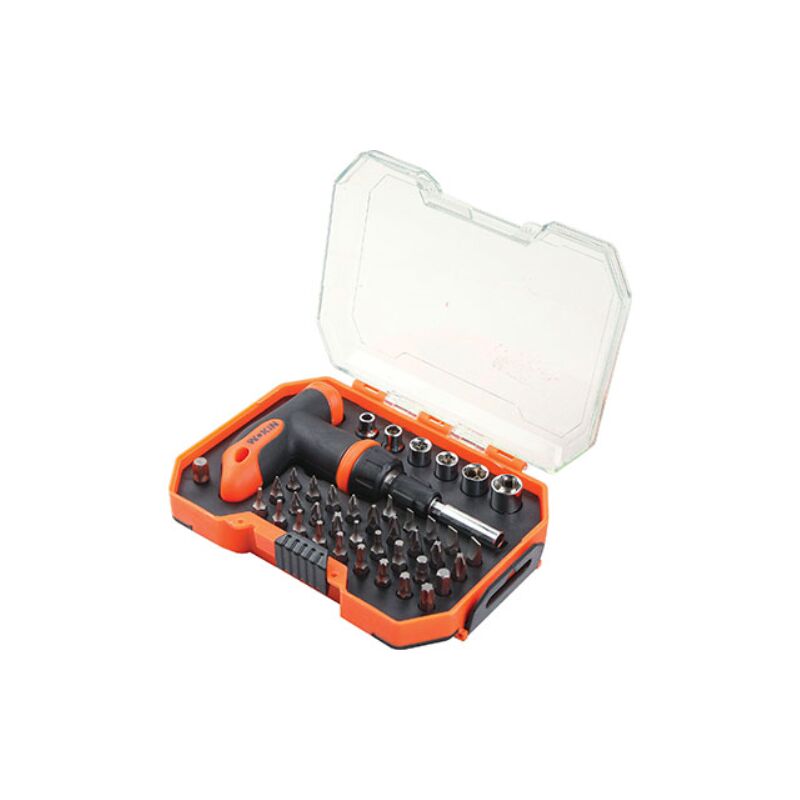 32 inserti mm. 25: taglio mm. 3, 4, 5, 6 e 7, 2xph0, 2xph1, 3xph2, 2xph3, pz 0, 1, 2 e 3, hex 2, 3, 4, 5 e 6, t 8, 9, 10, 15, 20, 25, 27, 30 e 40. in box plastico.