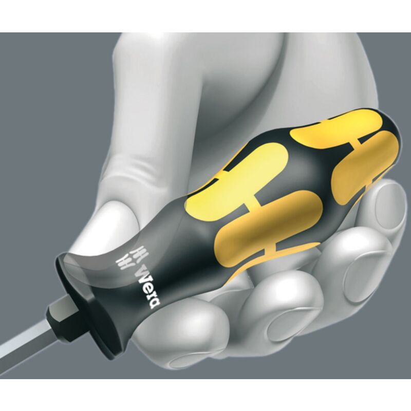 Il giravite a scalpello per avvitare, scalpellare e far leva Con lama continua esagonale Impugnatura Kraftform multicomponente per lavori rapidi ed ergonomici Con scudo ed esagono per chiave per trasmettere coppie ancora più elevate La punta Wera Black Point offre precisione di accoppiamento e protezione anticorrosiva ottimizzata Wera 017010 Kraftform 917 Phillips Tip PH2 Chisel Driver 100mm