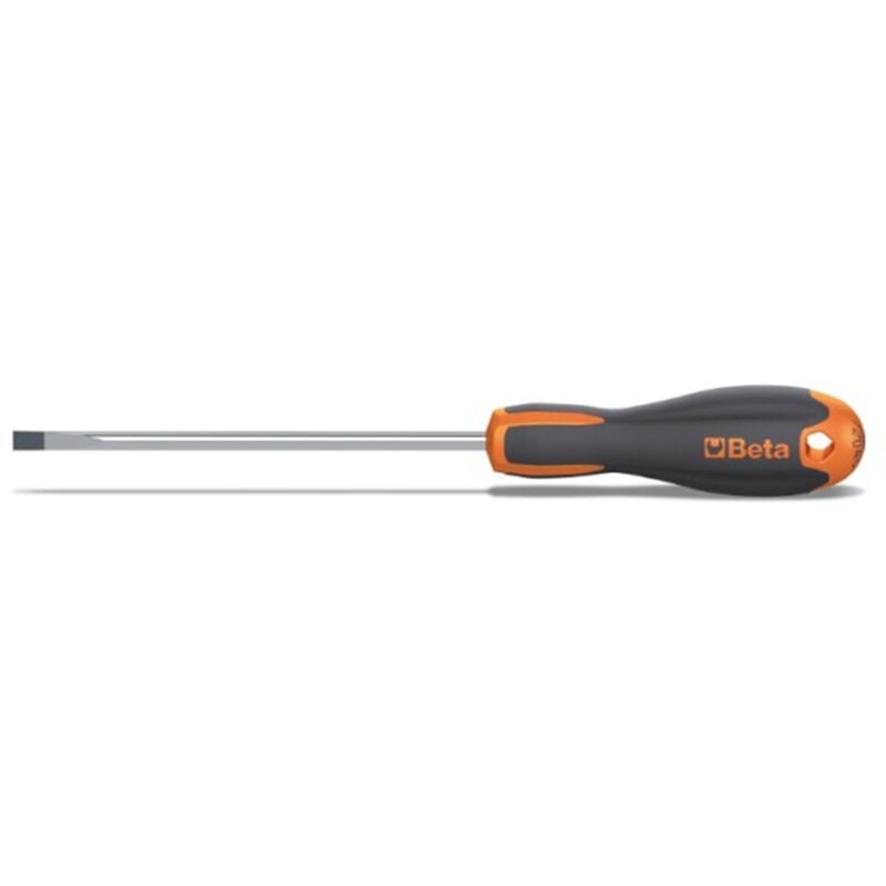 Giravite Evox per viti senza testa con intaglio cromati punta nera L'evoluzione del giravite! Caratteristiche: • Impugnatura bimateriale per trasmettere il massimo della forza con il minimo sforzo e il miglior comfort possibili • Design ergonomico si adatta perfettamente al palmo della mano • Impronta e misura sono riportate sulla calotta sferica per una rapida individuazione • Collaudate lame Beta che offrono elasticità, durezza e resistenza all'usura ai vertici della categoria dei cacciavite professionali • Punta priva di cromatura per garantire un perfetto accoppiamento con la vite ed è protetta dall'ossidazione con un trattamento di fosfatazione • Appendibile grazie al foro sull'impugnatura Codice prodotto Art. SxDxL mm L1 mm g 012041006 1204E 3X75 0,6x3x75 175 37