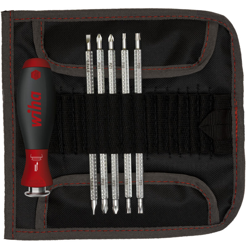 Simplifica su trabajo: Todas las herramientas están alojadas de forma segura y ordenada en una bolsa robusta y transparente. Protege su salud: Con diseño del mango SoftFinish® patentado, protegemos las manos y los músculos a la hora de trabajar. Recomendado por profesionales de la medicina y terapeutas de la asociación alemana AGR de seguridad postural en el trabajo. Facilita el manejo: Activación sencilla de la tecla de bloqueo y desbloqueo. Aplicación: Versátil, ocupa poco espacio y cabe en cualquier maletín de herramientas. Aplicación: Plata titanio, tamaños de toma de fuerza grabados con láser. Aplicación: Acero al cromo-vanadio-molibdeno de alta calidad, templado continuo. Aplicación: Longitudes de cuchilla variables, ajustables de 42 a 114 mm. Extra: La bolsa de tela robusta permite una conservación ahorradora de espacio de las herramientas. Varilla: Plata titanio, tamaños de toma de fuerza grabados con láser. Varilla: Acero al cromo-vanadio-molibdeno de alta calidad