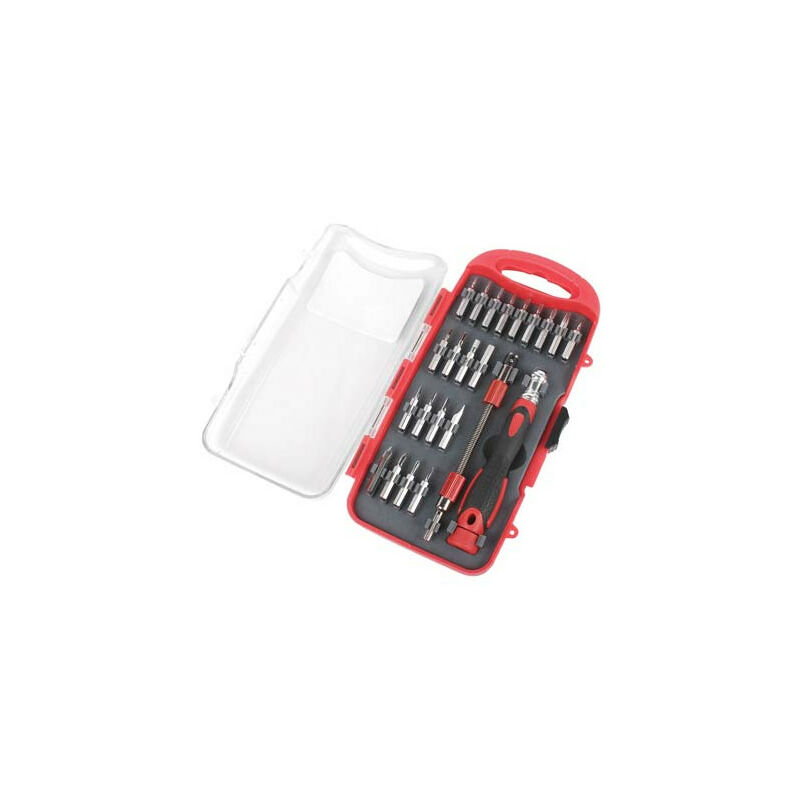 Set Composto Da 23 Pezzi. 1 Impugnatura E 1 Adattatore Flessibile. 21 Inserti Di Precisione Da 5/32”x1-1/8”: Ph 000, 00, 0 E 1, T 5, 6, 7, 8, 9, 10, 15 E 20, Taglio Mm. 1,5, 2, 2,5, 3 E 4, Esagonali Mm. 1,5, 2, 2,5, 3, 4.