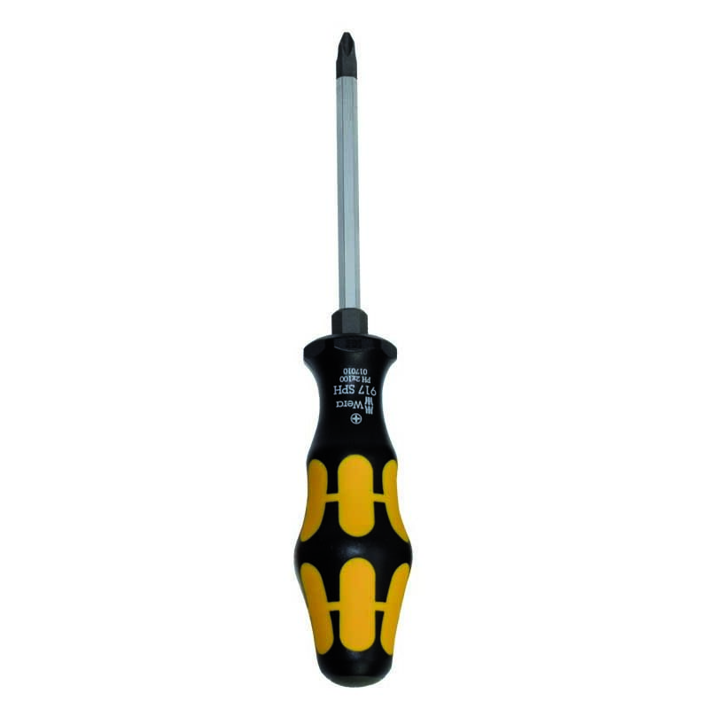 Profilo a croce PH 2 X 100 Giraviti professionali con impugnatura ergonomica in materiale bi-componente antiscivolo. Studiato per essere utilizzato anche come scalpello, esagono integrato nella lama per utilizzare chiavi fisse per un ulteriore forza di serraggio. MADE IN GERMANY