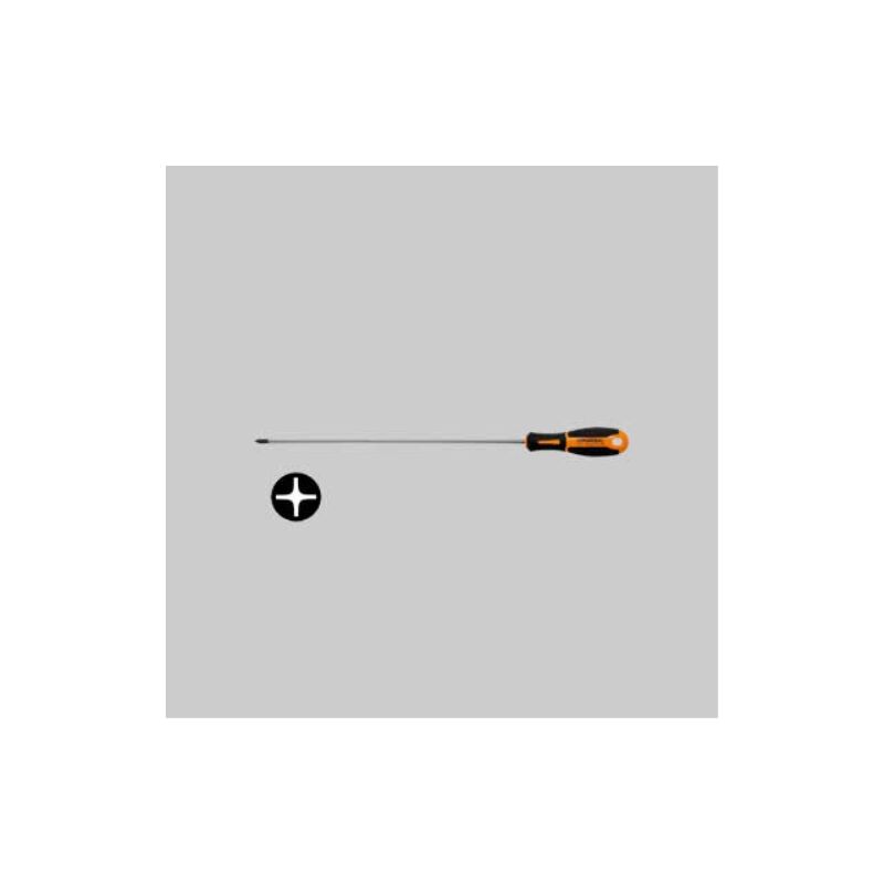 In acciaio al cromo vanadio-molibdeno, finitura cromata con punta nera. Impugnatura ergonomica bimateriale. Giravite lungo per viti a croce 'phillips' mundial ph 1 4,5x400 mm MUNDIAL Utensileria manuale mundial