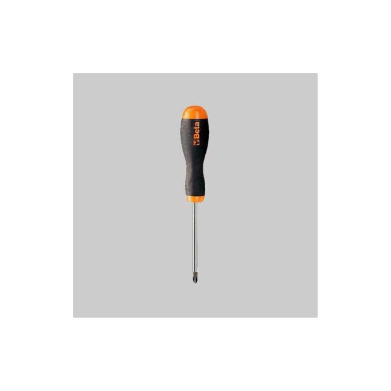 Lama in acciaio di alta qualit.... Finitura cromata con punta nera priva di cromatura per garantire un perfetto accoppiamento con la vite, Š protetta dall'ossidazione con un trattamento di fosfatazione. Impugnatura bimateriale con anima rigida in polipropilene e morbido rivestimento in gomma termoplastica. Giravite per viti con impronta a croce ph art. 1202 beta ph 1x4,5x120 BETA Utensileria beta