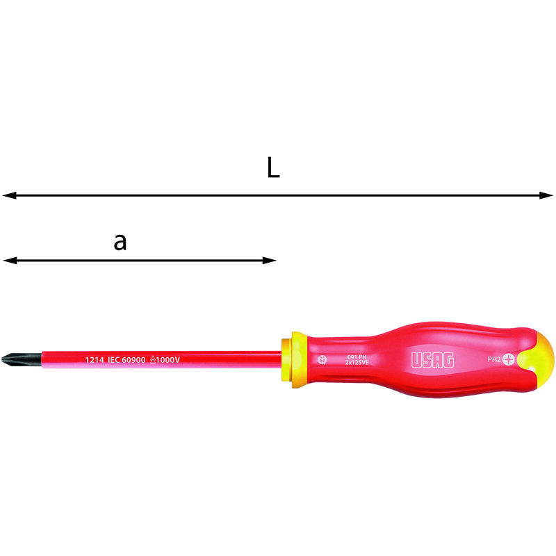 GIRAVITI PER VITI CON IMPRONTA A CROCE PHILLIPS® 1000 V • Lama in acciaio caricato al Silicio, Manganese e Molibdeno con esecuzione fosfatata • Impugnatura ergonomica trimateriale isolata con rivestimento soft grip, resistente ad olii ed agenti chimici • Codice colore sull'impugnatura per distinguere le diverse impronte • Ogni giravite è testato secondo la normativa europea EN 60900 per garantire il lavoro in sicurezza • Certificazione IMQ Codice n°xa L mm Misura impugnatura Q.tà x conf. U00910023 0x75 179 M1 5 U00910025 1x100 209 M2 5 U00910027 2x125 245 M3 5