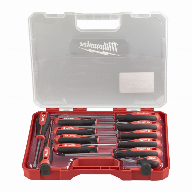 Set Giraviti 12pezzi Taglio Croce Philps - 493247200 Milwaukee 4932472003 - Set giraviti 12 pezzi - cacciaviti con valigetta Impugnatura estremamente maneggevole che consente all'utilizzatore un comodo e veloce utilizzo durante le applicazioni. Contrassegni di identificazione sempre ben visibili per facilitare l'identificazione del giravite. Foro per agganciare il giravite a lacci di sicurezza. Punta in materiale magnetico estremamente resistente e pratico. Manico a tre facce per evitare che il giravite scivoli tra le mani. Lama esagonale per poter utilizzare la chiave per applicare una leva maggiore.