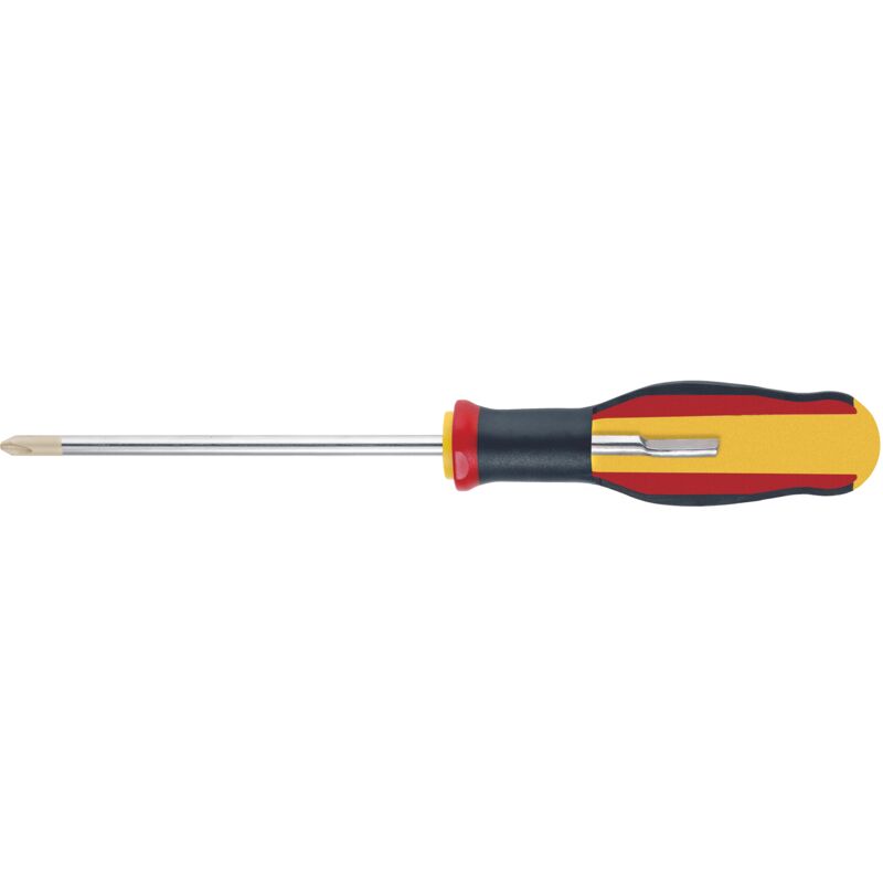 GIRAVITI PER VITI CON INTAGLIO • Per la manovra di grani o viti incassate • Punta zincata che garantisce un'elevata resistenza all'usura ed alla corrosione • Lama in acciaio al Cromo Silicio Vanadio per un'ottima resistenza alla flessione • Impugnatura ergonomica trimateriale con rivestimento soft grip, resistente ad oli ed agenti chimici • Codice colore sull'impugnatura per distinguere le diverse impronte Codice n°xa L mm Misura impgnatura U03240439 0x75 179 M1