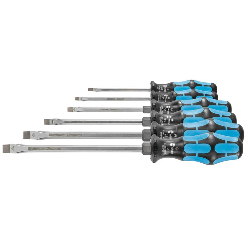 Giravite versatile e robusto con lama conica (punta) ed esagono di manovra. L'impugnatura Kraftform in plastica resistente agli urti, con zone morbide integrate facilita la trasmissione del momento torcente e pertanto non stanca né mano né braccio. Lame in acciaio speciale altamente legato;