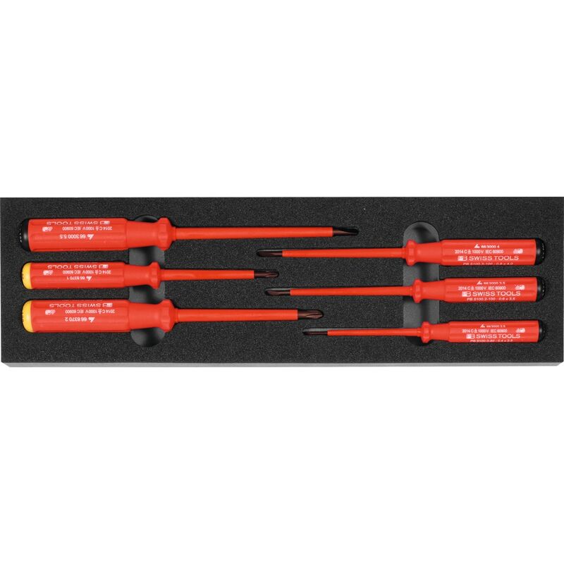2: cad. 1 pz. Dati tecnici Forma in espanso rigido LD45, spessore mm 30 Shadow Board mm 115 Tipo di prodotto Inserto in espanso rigido Larghezza, mm 383 Numero di utensili 6 Profondità, mm 115 Esecuzione con utensili a norme VDE completamente isolati
