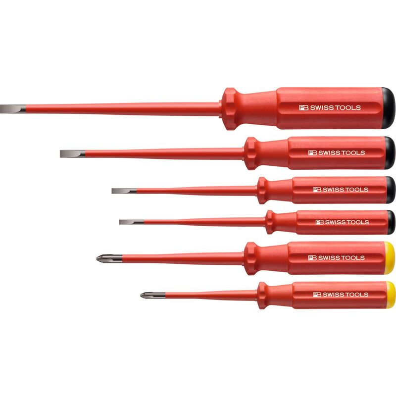 Impugnatura sottile con rivestimento ipoallergenico in elastomero e nocciolo in polipropilene resistente agli urti. Impugnatura e lama completamente isolate fino a 1.000 V a norma DIN EN 60900 / VDE 0682-201. ⌀ ridotto della lama con isolamento di protezione integrato per morsetti a vite e a molla in profondità (⌀ lama = ⌀ isolamento nella parte anteriore della lama). Fornitura: Cad. 1 giravite per viti con intaglio Slim n. art. 663003 Dim. 3,5;