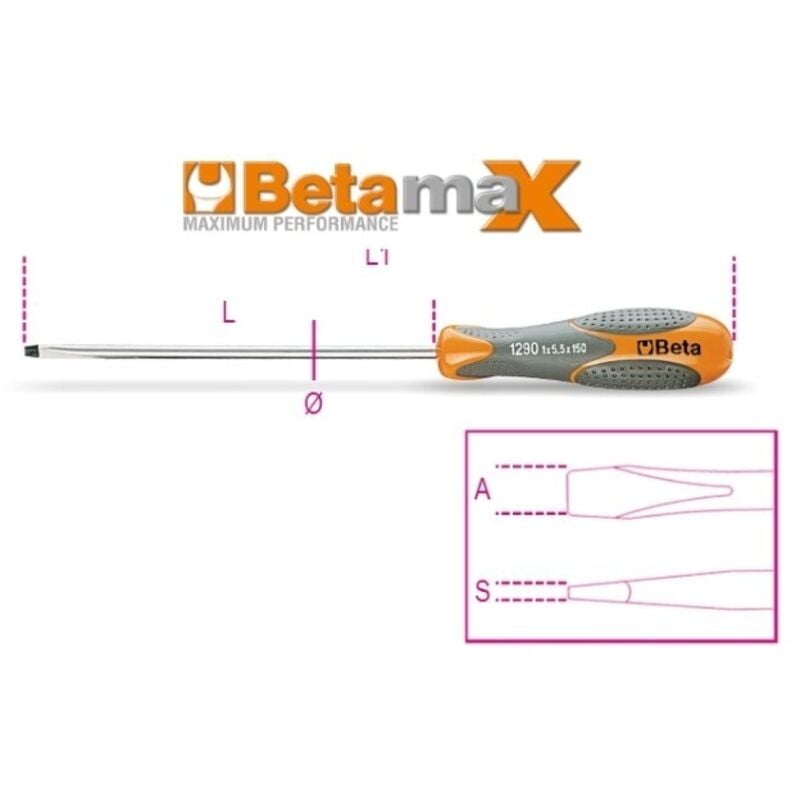 ISO 2380 SxAxL mm 0,8x4x150 L1 mm 246 Ø mm 4,0 g 47,1 • Nuova impugnatura bimateriale con anima rigida in polipropilene iniettata sulla lama per un sicuro ancoraggio. • Morbido rivestimento in gomma termoplastica. • La punta è priva di cromatura per garantire un perfetto accoppiamento con la vite ed è protetta dall'ossidazione con un trattamento di fosfatazione