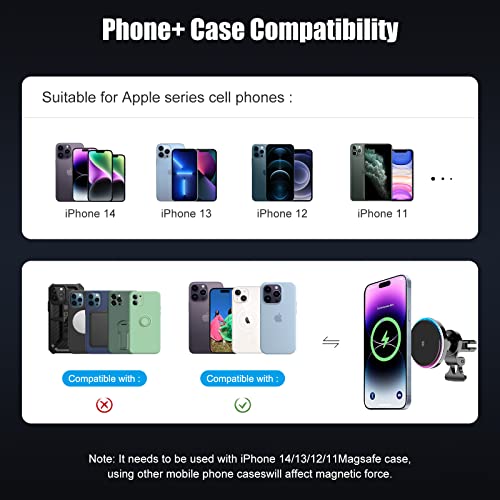Ampia gamma di compatibilità: Caricatore Wireless Auto Compatibilità con auto è appositamente progettato per IPhone 14/13/13 Pro/13 mini/13 Pro Max/12/12 Pro/12 mini/12 Pro Max e altri modelli di iPhone.