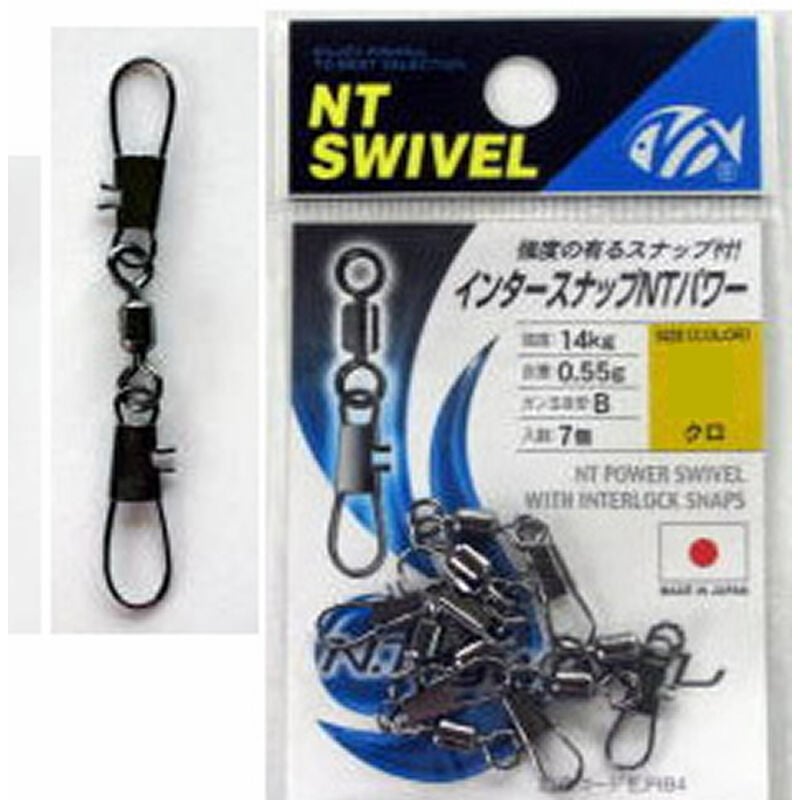 NT SWIVEL Girevole. Migliore girella giapponese NT, Utilizzabile dalla maggio parte dei popper. Ottimo sia per i pescatori popping e jigging. NT anche fare una serie di Snap, doppio moschettone con cuscinetto a sfere girevole. Made in Giappone. Girella con doppio bloccaggio a scatto Portata kg 5,9
