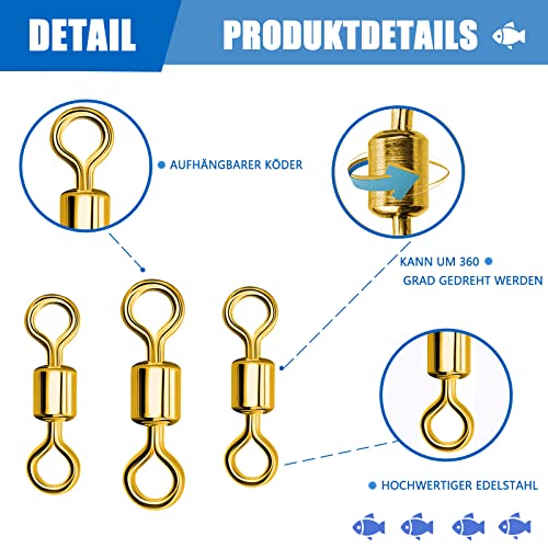 Girella da Pesca, 100 Pezzi Anelli Solidi da Pesca per la Pesca in Mare, Barca e Fiume, Oro