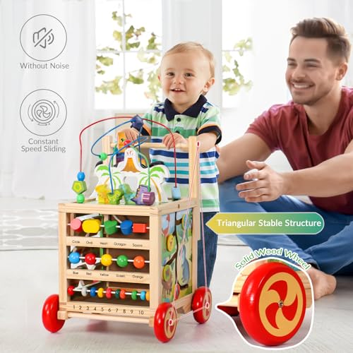 Regalo Bambino Bambina 1 Anno Creativi: Girello giochi legno è perfetto come primo regalo di compleanno e regalo di Natale per bambini e bambine dai 12 mesi in su, il bambino non solo può divertirsi imparando a camminare, ma anche sviluppare le proprie capacità e la propria immaginaz