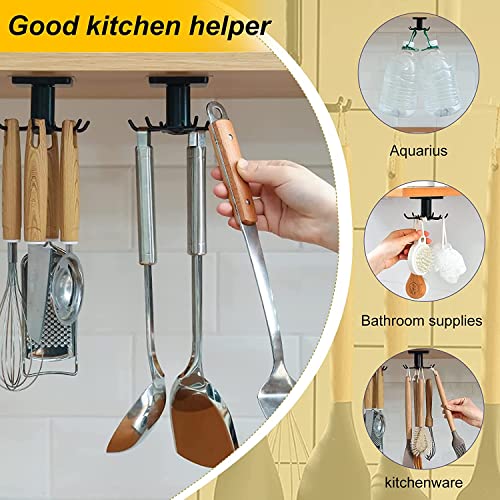2 x 360 ° girevole utensili da cucina gancio, gancio utensili da cucina con 6 ganci, non è necessario forare l'organizzatore di stoccaggio per cucina/bagno/guardaroba (nero)