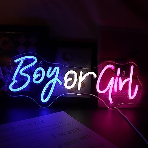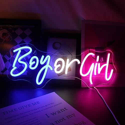 Led "Boy or Girl" Segni al neon Genere Rivelare Decorazioni del partito Segni di lettere al neon Annuncio di gravidanza Forniture del partito Baby Shower Yard Segni (blu-rosa)