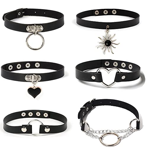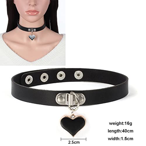 Girocollo da Donna in Vera Pelle, con Ciondolo a Forma di Cuore, Regolabile, in Stile Gotico Punk Rock, 6 Pezzi Collana Girocollo in Pelle PU, Girocollo Punk con Borchie Girocollo in Pelle